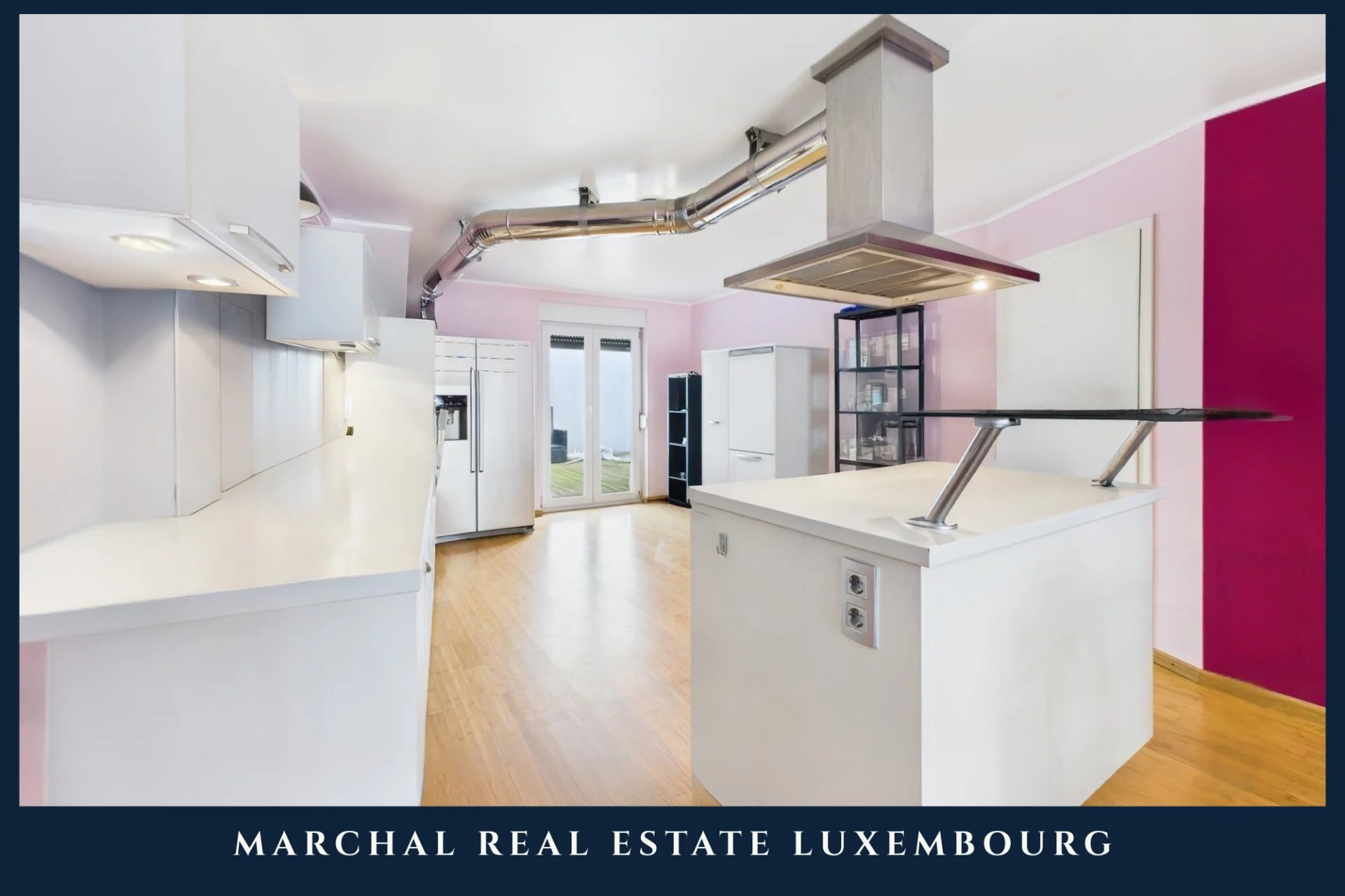 Un hall d’entrée – un spacieux living avec cuisine équipée de plus de 50 m² donnant sur une grande terrasse de 40 m² – deux belles chambres – une buanderie – cave – parking intérieur.